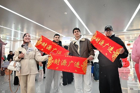 Inside the ‘Yiwu International Trade City’, foreign buyers maneuvered carts through the aisles, while purchasing agents carrying product samples stopped frequently to request quotations. The soundscape was filled with bargaining, order placement, packing, and outbound-shipment preparations—an unmistakably vibrant start to the trading year.